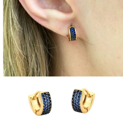 MINI ARGOLA PAVE DE ZIRCONIAS AZUIS – BANHO EM OURO AMARELO