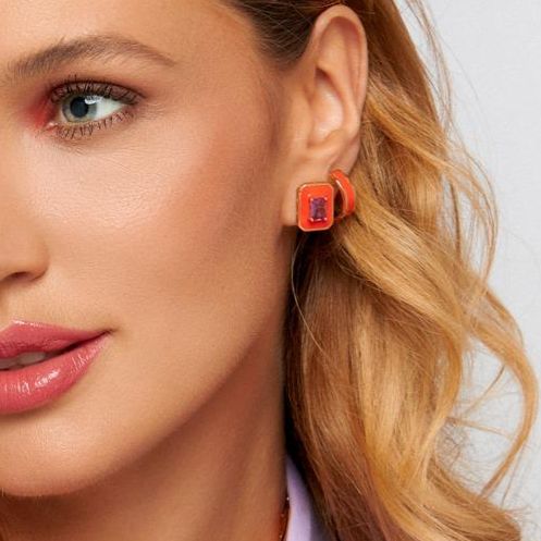 MEIA ARGOLA COM ESMALTE – BANHO EM OURO