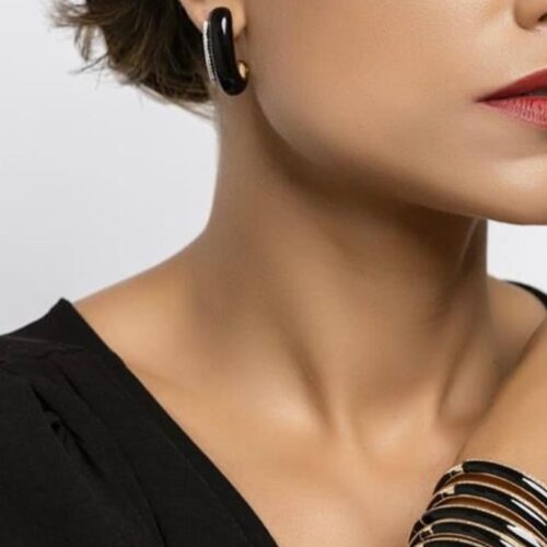 MEIA ARGOLA ESMALTE PRETO – BANHO EM OURO AMARELO