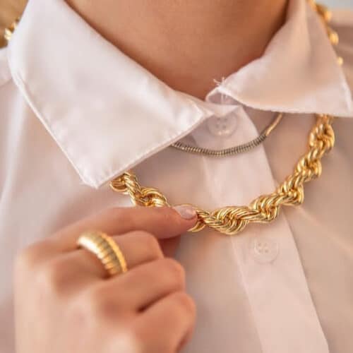 MEGA COLAR MALHA CORDA – BANHO EM OURO AMARELO
