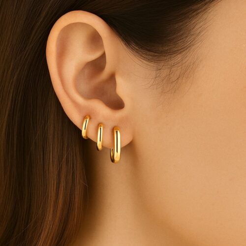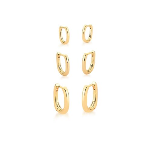 TRIO DE ARGOLAS LEVEMENTE RETANGULARES – BANHO EM OURO AMARELO