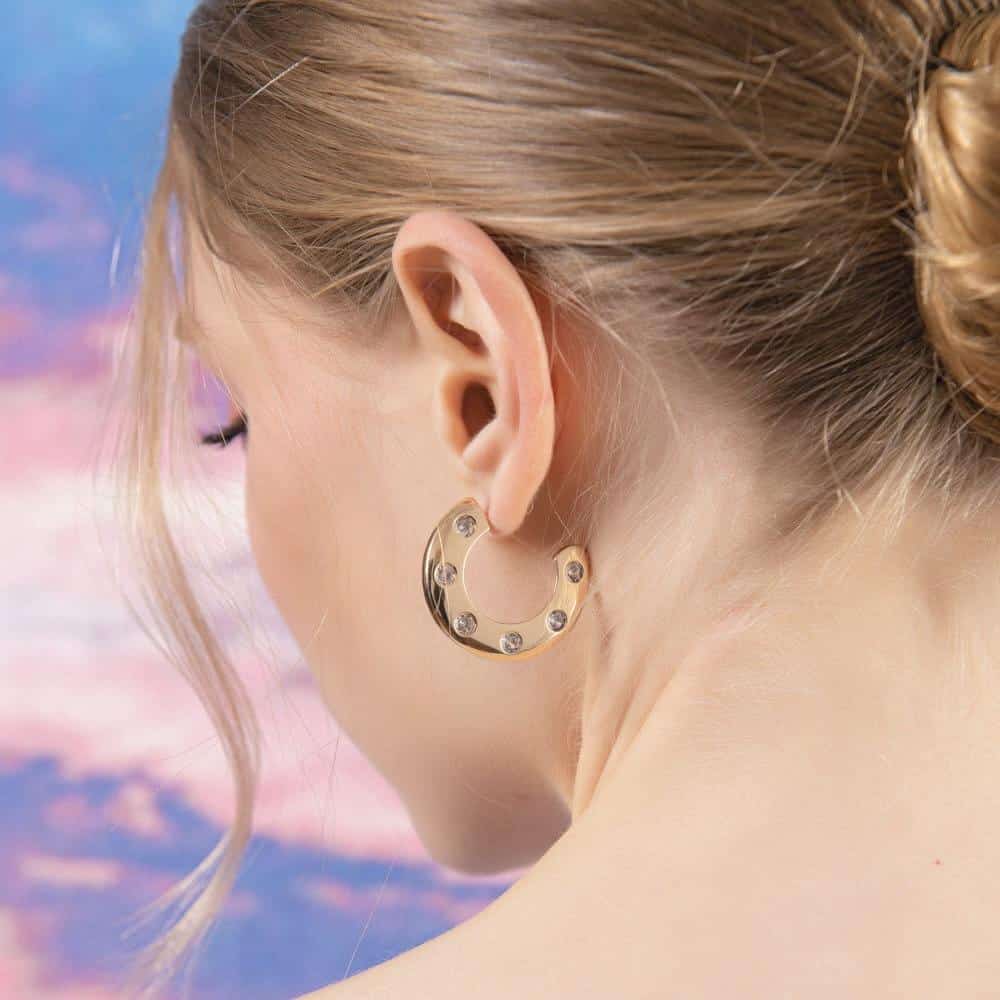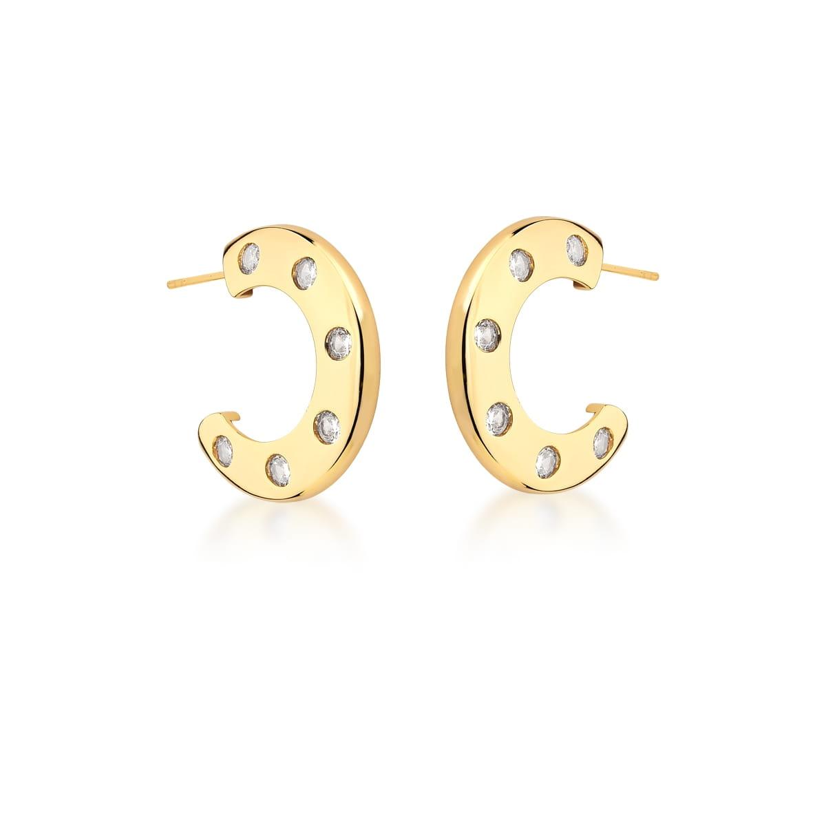 ARGOLA LATERAL COM ZIRCONIAS – BANHO OURO AMARELO