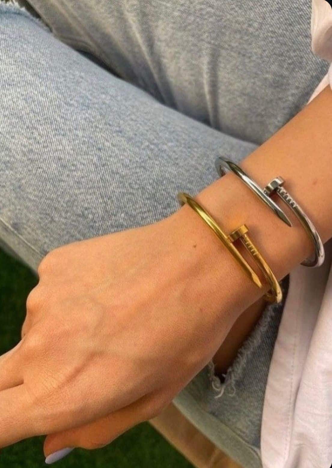 Com design contemporâneo e marcante, este bracelete em formato de prego traz uma proposta ousada e elegante, inspirada nas tendências internacionais de moda. Reconhecido por seu estilo ousado e minimalista. Um ícone da moda contemporânea, ele se tornou queridinho entre celebridades e amantes de acessórios de impacto.