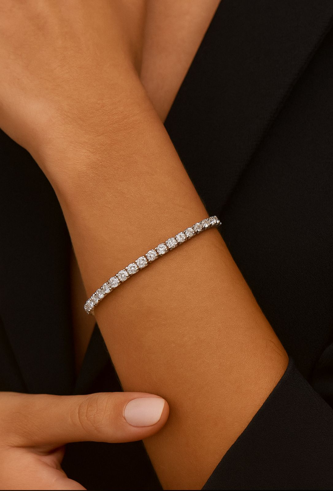 Um espetáculo de brilho e sofisticação! Essa pulseira Riviera no ródio branco é puro luxo no pulso. Com suas zircônias lapidadas medindo 0,4cm x 0,4cm, cada pedra reflete a luz de forma intensa, criando um efeito deslumbrante digno das joias mais refinadas.