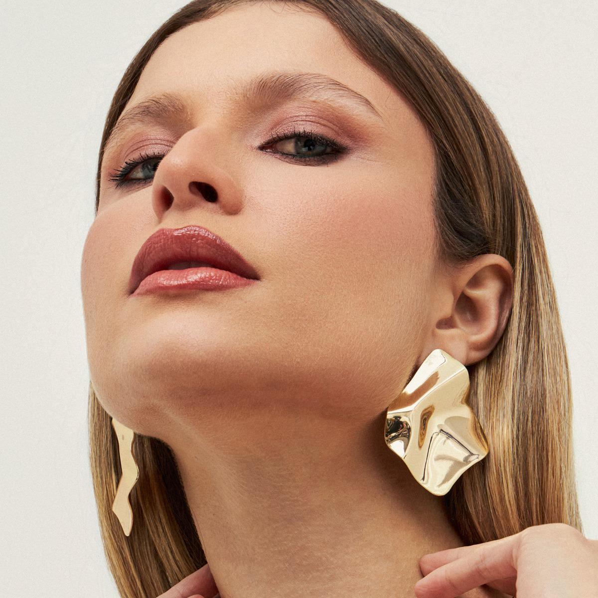 Design contemporâneo que impressiona! Esse brinco com formato orgânico e acabamento polido é uma peça ousada e sofisticada, perfeita para quem busca se destacar com estilo. O banho em ouro amarelo realça as curvas fluidas e o brilho espelhado, criando um visual marcante que ilumina o rosto.