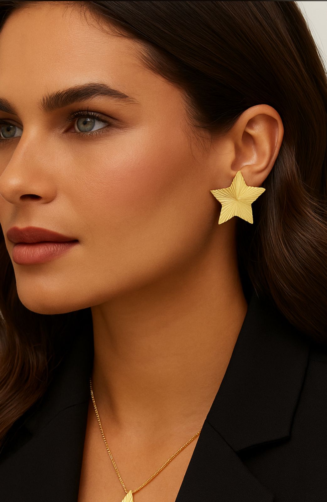 Brinco em formato de estrela grande, com textura marcante e acabamento blindado que garante brilho e durabilidade. Uma peça impactante, perfeita para quem ama acessórios com personalidade. Possui pino e tarraxa para melhor fixação e conforto no uso.