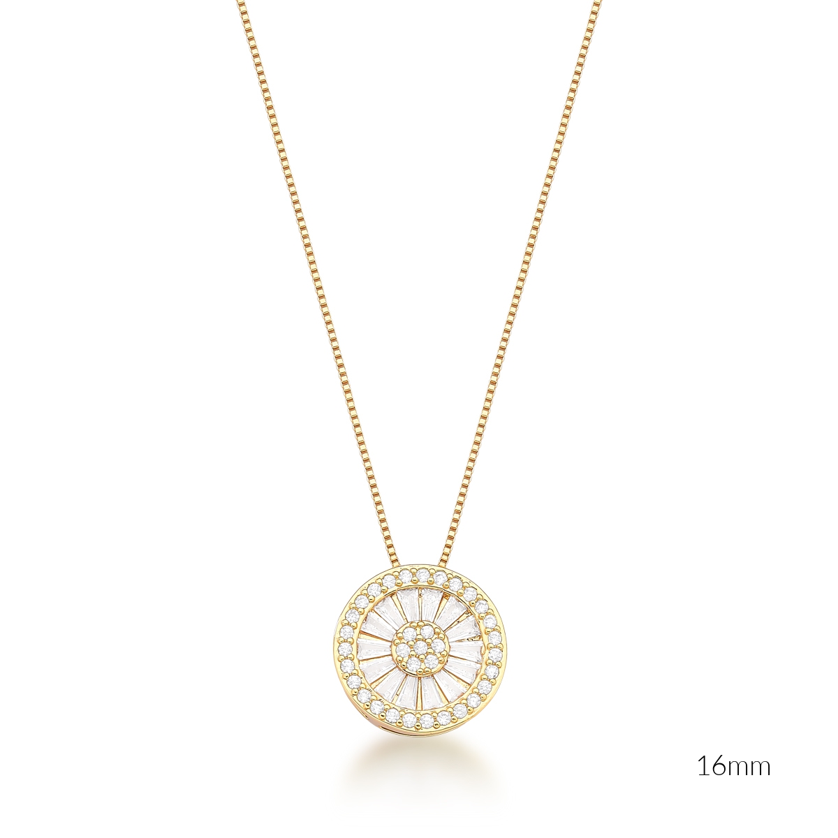 A corrente com malha veneziana e pingente em formato de pizza é o equilíbrio ideal entre charme e sofisticação. O design circular do pingente, cravejado com zircônias em lapidações baquete e redonda, proporciona brilho intenso e refinado, criando um visual moderno e atemporal.
