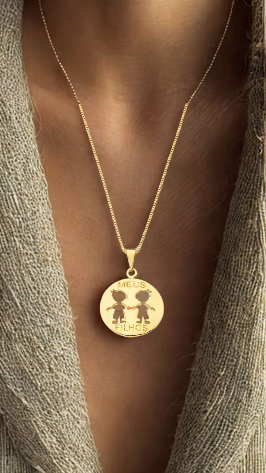 CORRENTE PINGENTE CASAL DE MENINOS – BANHO OURO AMARELO