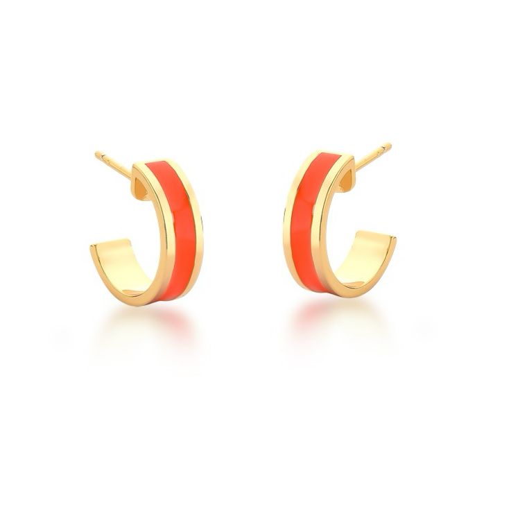 Brinco meia argola com acabamento moderno em esmalte laranja flúor, ideal para quem ama cor, ousadia e estilo. Possui estrutura leve, acabamento blindado e pino com tarraxa, garantindo conforto e segurança no uso. Uma peça cheia de atitude para iluminar qualquer look!