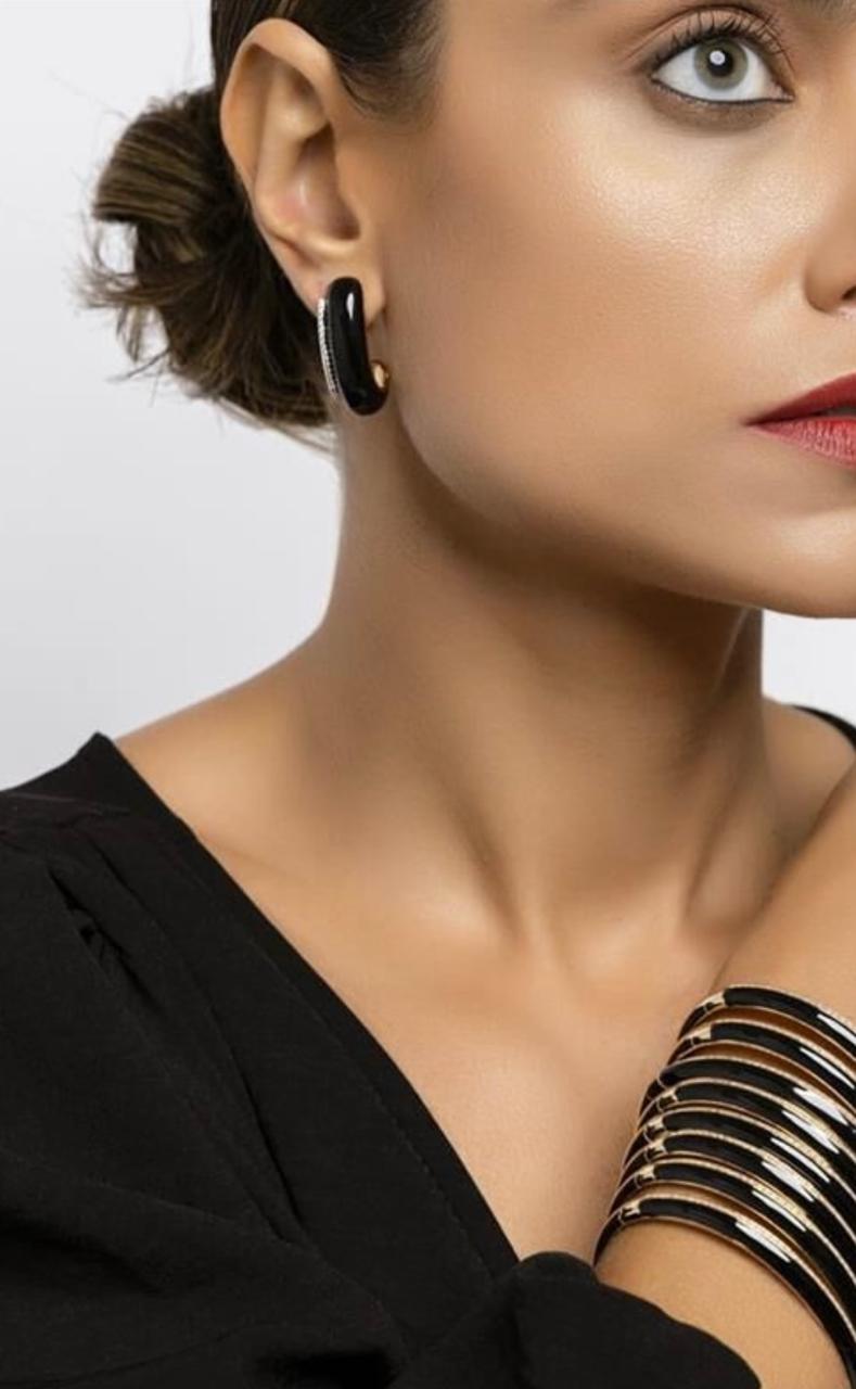 Sofisticação em cada detalhe! Essa meia argola combina o esmalte preto intenso com o brilho delicado de uma fileira de zircônias, criando um contraste moderno e elegante. Ideal para quem busca um toque de personalidade e classe no look, seja no dia a dia ou em ocasiões especiais.