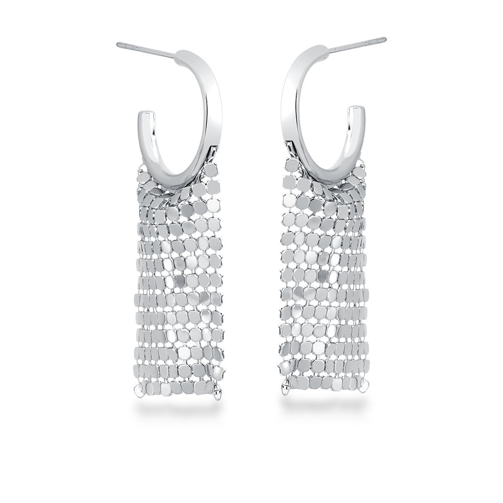 Charmoso e com presença marcante, este brinco em meia argola média traz uma franja de paetês em largura média e caimento leve, que acompanha o movimento com elegância. O banho em ródio branco adiciona um brilho sofisticado, perfeito para compor looks modernos com um toque de glamour.