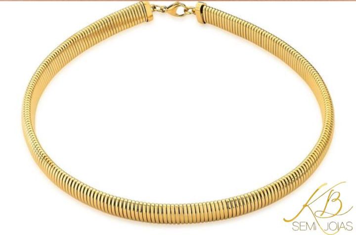 Colar estilo ômega com estrutura tipo mola, que se ajusta delicadamente ao contorno do pescoço. Com mobilidade flexível e caimento impecável, é ideal para ser usado como choker ou coleira, garantindo um visual sofisticado e contemporâneo. Acompanha alongador que permite ajuste personalizado de acordo com o look ou ocasião.