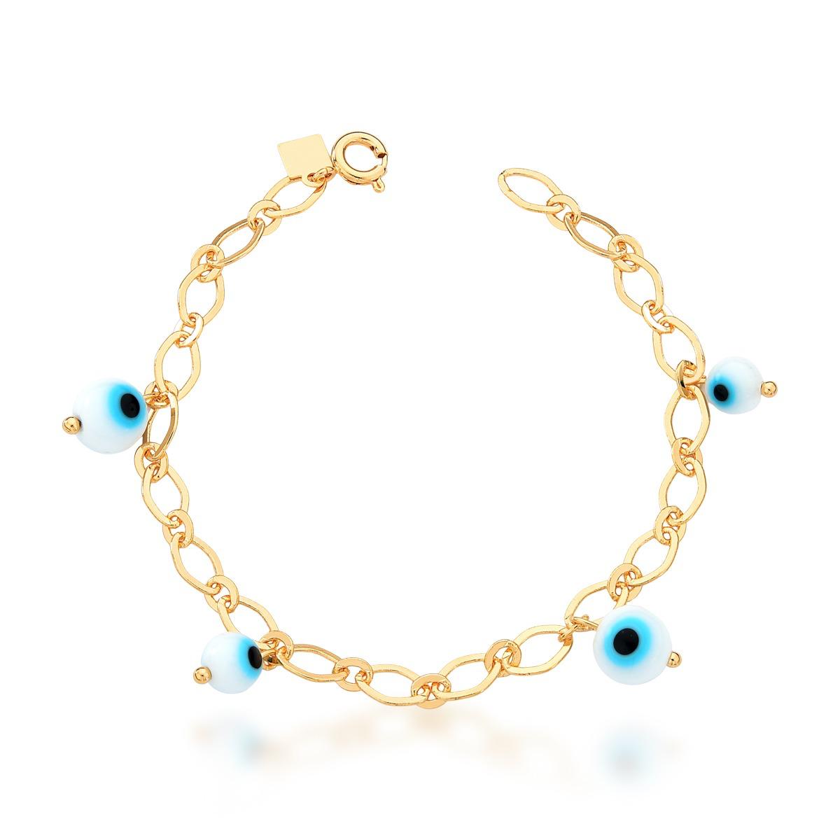 PULSEIRA BERLOQUES DE OLHO GREGO – BANHO DE OURO AMARELO