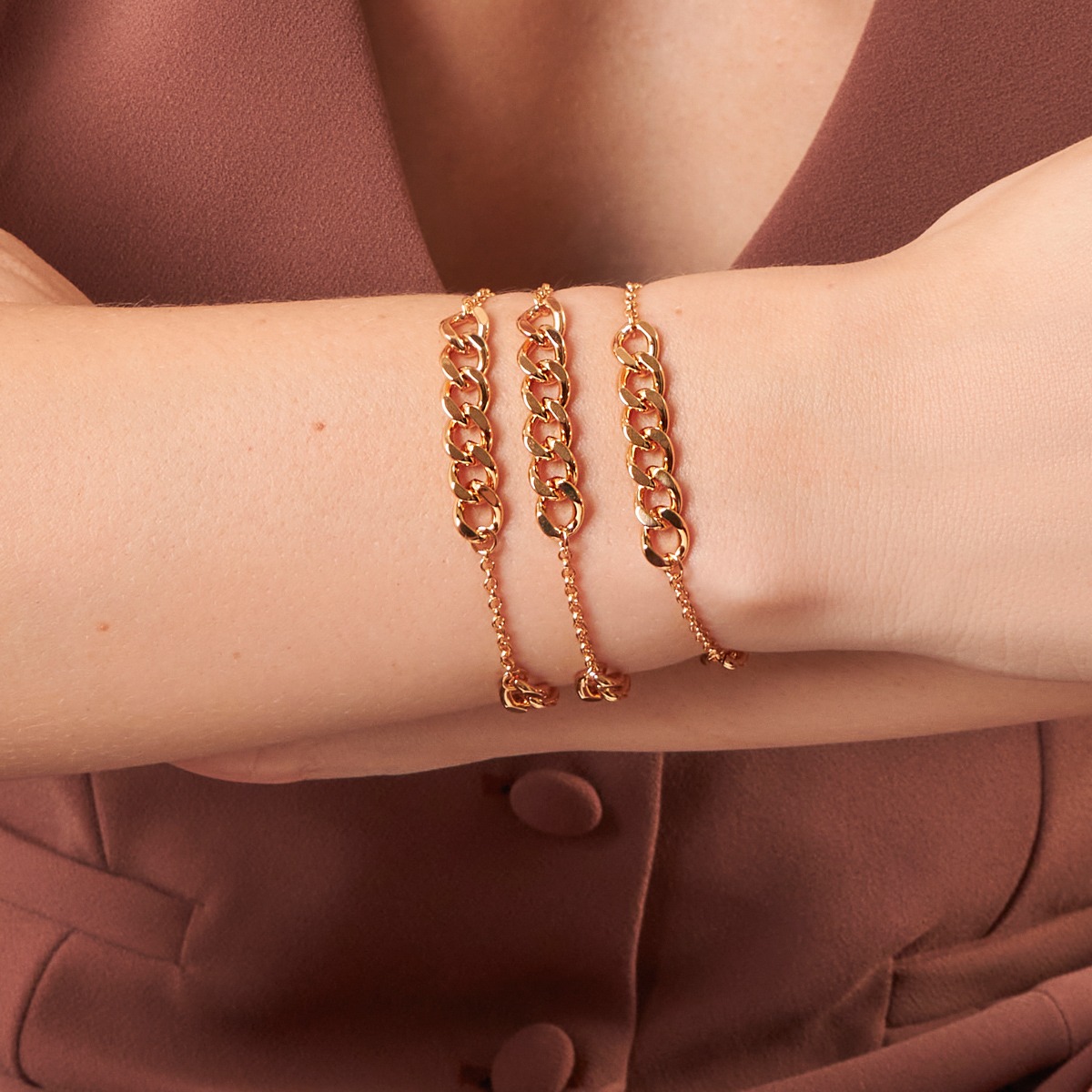 Pulseira delicada com elos porgueses com toque de personalidade: o centro da peça traz elos grumet mais marcantes, criando um contraste moderno e elegante. Ideal para quem gosta de acessórios sutis, mas com um charme especial. Perfeita para uso diário ou composições com outras pulseiras.