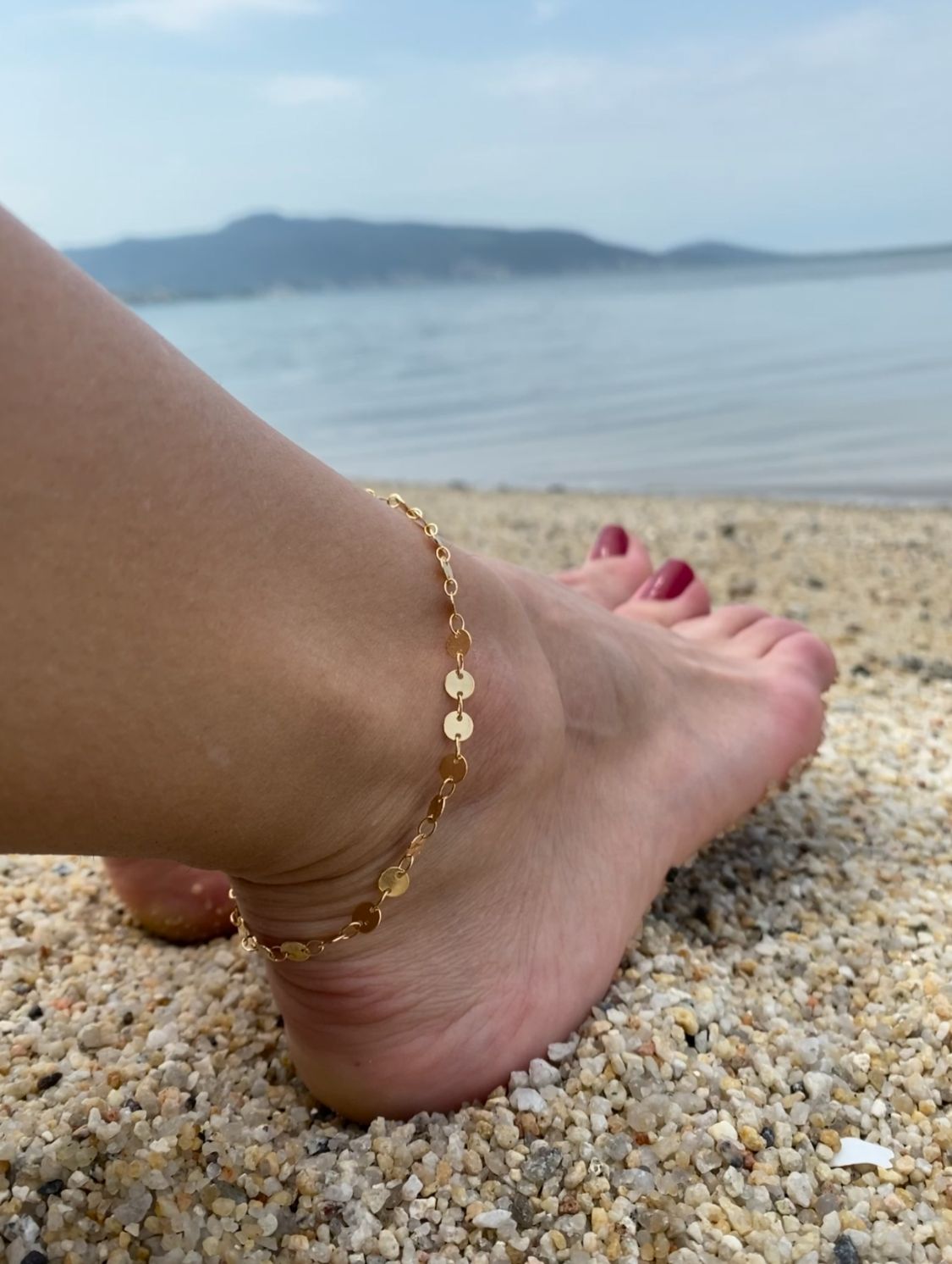 Tornozeleira delicada e charmosa, com plaquinhas redondas que lembram pequenas sementinhas douradas, criando um efeito visual leve, divertido e elegante. Um mimo perfeito para destacar o tornozelo com sofisticação e um toque de brilho. Ideal para usar sozinha ou em composição com outras peças, essa tornozeleira traz movimento e charme em cada detalhe. Banho em ouro amarelo e acabamento polido garantem brilho duradouro.