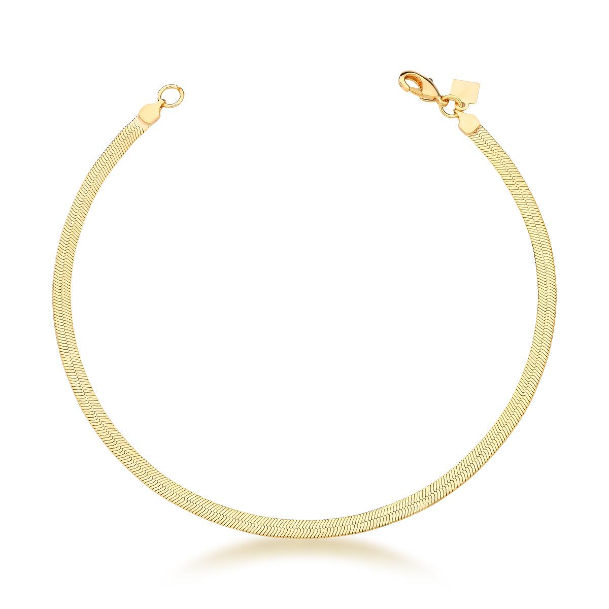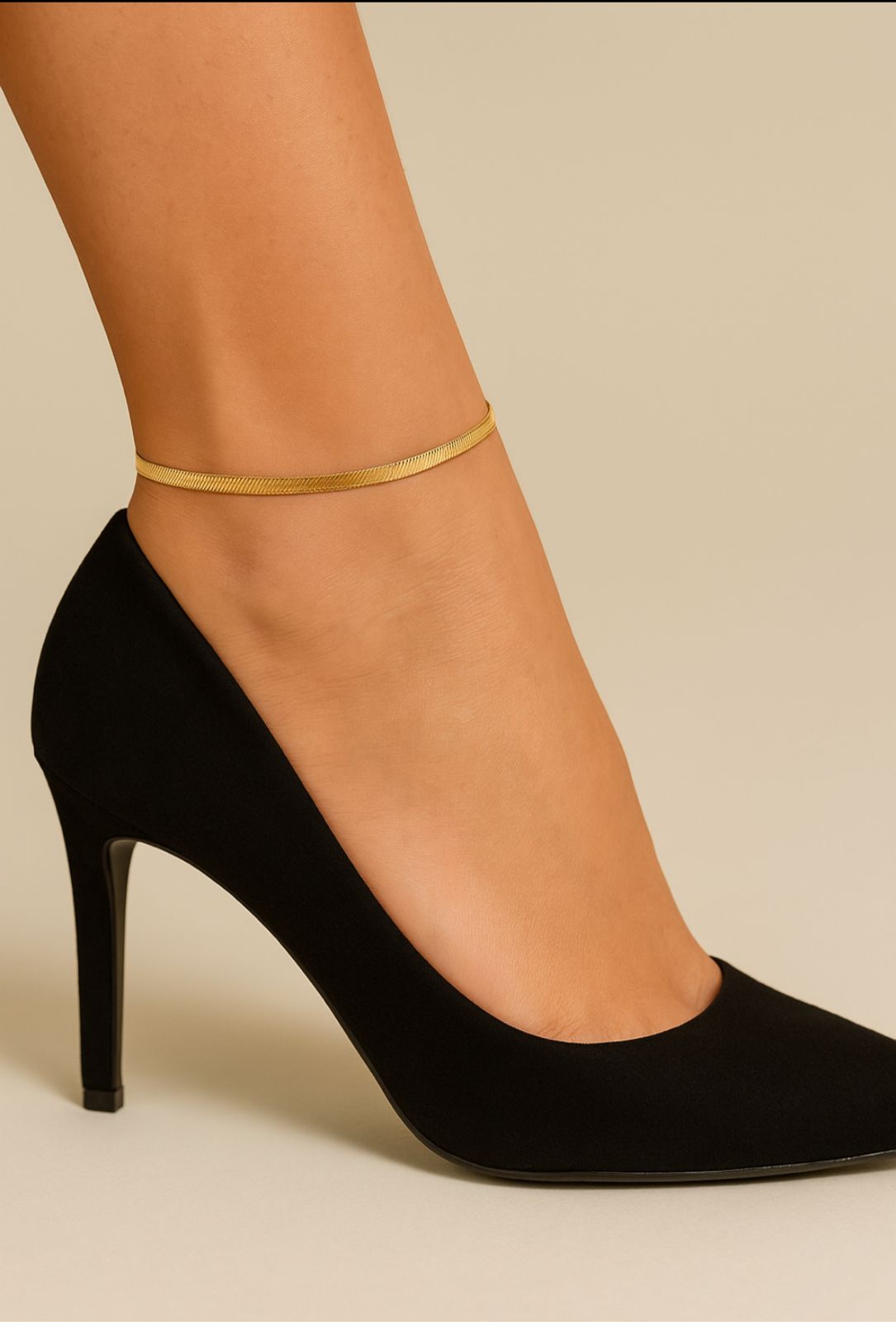 Tornozeleira em malha fita com design moderno, delicado e extremamente elegante. Seu caimento leve e brilho sutil valorizam o tornozelo com discrição e sofisticação, tornando-a uma peça coringa para composições do dia a dia ou para eventos especiais. Um acessório versátil, perfeito para quem gosta de unir estilo e minimalismo. Banho em ouro amarelo, garantindo durabilidade e charme atemporal.